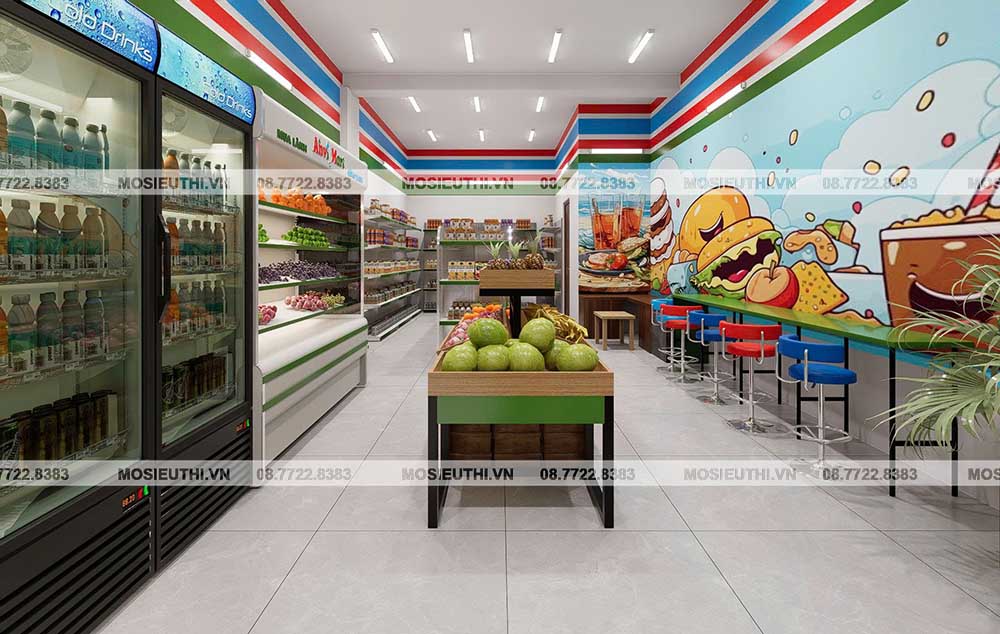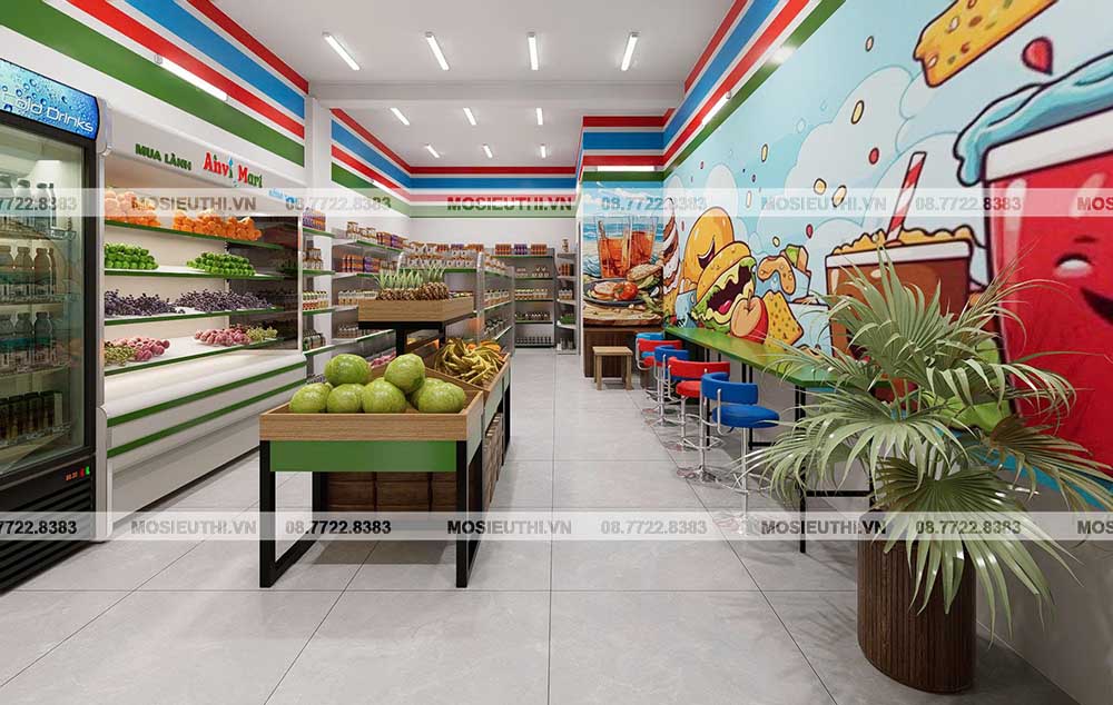 Giai đoạn thiết kế 3D không chỉ là bản vẽ, mà còn là công cụ quản lý toàn bộ dự án setup siêu thị. Với hơn 10 năm kinh nghiệm setup siêu thị và cửa hàng tiện lợi trên toàn quốc, MOSIEUTHI.VN chú trọng đến: