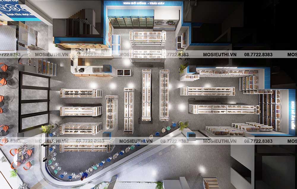Thiết kế 3D là bước nền tảng để thi công chính xác và đảm bảo siêu thị vận hành hiệu quả, bao gồm: